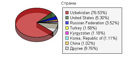 | Endi Nafosat va Kundalik sahifalariga kirgan foydalanuvchilarni davlatlar bo'yicha hissasini ko'rib chiqsak. 2004 yil. Nafosat 2006 yil. Nafosat 2008 yil. Kundalik 2009 yil. (Aprel) Kundalik  Добавлено (28.04.2009, 10:34) --------------------------------------------- Ko'rib turganingizdek, sahifalarga kirishda O'zbekistonning hissasi tobora ortib bormoqda. Bu O'zbekistonda Internet tarmo'gini ko'piayib borishi bilan izohlanishi mumkin. Lekin shuni ham tan olib aytish kerakki, AQSH, Rossiya va Koreada yurgan yurtdoshlarimiz ham sahifamizga befarq emaslar. Bizning vazifmiz esa ularni musofirlikda vatandan ajrab qolmasliklarini ta'minlashimiz kerak deb hisoblayman.
